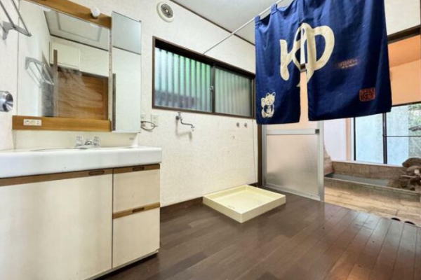 Good!!リビングを囲むように設置されたバルコニーから自然の風景を楽しめる温泉付き木造平家の中古戸建。家族とのコミュニケーションを取りやすく、家事動線も効率的で過ごしやすい間取りです。温泉引込済なので好きな時間に温泉に浸かれ自分だけの時間をお楽しみいただけます。