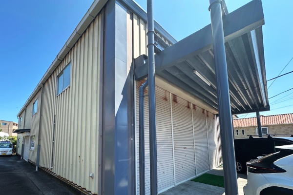- 鉄骨造亜鉛メッキ鋼板葺き