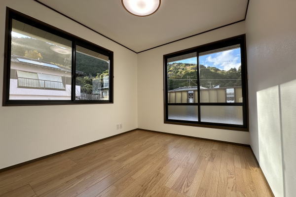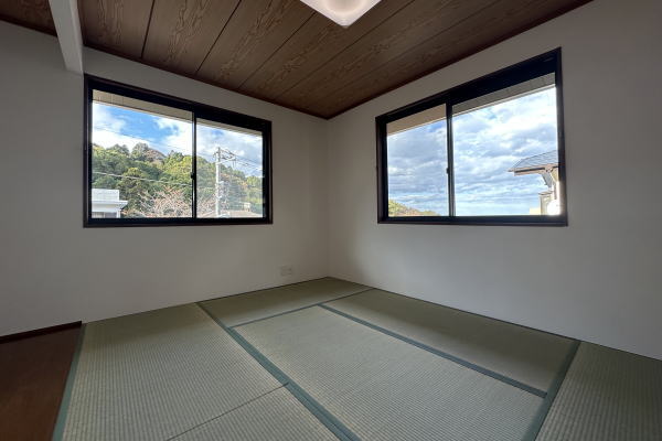 Good!!高台の北西・南西の角地に位置し、爽やかな風が心地よく抜ける理想的な住環境の5DK物件。玄関を入ると頭上には解放感たっぷりの明るい吹抜が広がり、開放的な雰囲気を感じて頂けます。全居室2面採光で、部屋全体が自然光に包まれ、快適な生活空間を実現。さらに2階からは海を望むことができ、日々の生活に癒やしをプラスします。令和7年11月に室内外リフォーム済なので即利用可能。ゆとりある間取りは間数も多く、豊富な収納スペースも充実しファミリー層にもお勧め。地下にはシャッター付の車庫(1台分)も完備