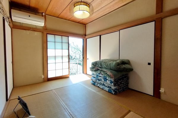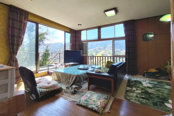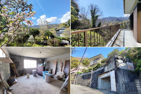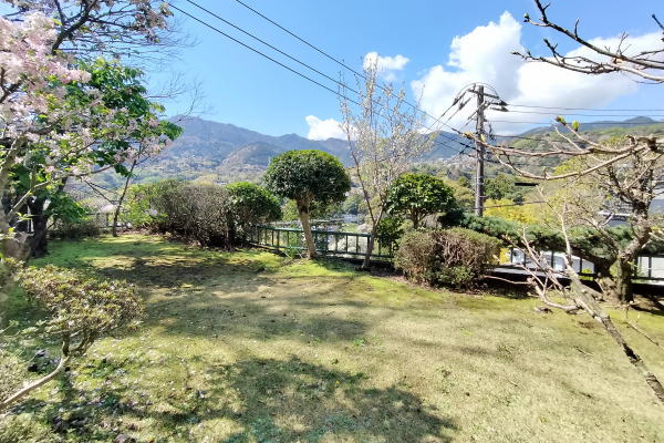 Good!!石段を上る情緒あふれるアプローチの先に、四季の彩りに包まれた理想の住まいが広がります。敷地の高低差を活かした造りにより、LDKや3室の和室、どの部屋からも雄大な山並みを一望。2階の洗面室横からも直接庭へ出られ、自然を身近に感じる設計です。最大の贅沢は、源泉の持ち分を備えた本格的な「岩風呂」。自宅で温泉に浸かり、窓の外の絶景を独り占めできます。春には庭の桜を愛で、バルコニーで山々を眺めながらコーヒーを嗜む。日常が贅沢なアクティビティに変わる、心安らぐ住環境です。アプローチ途中には便利な倉庫も完備。