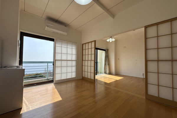 Good!!昭和の良き時代に建築された眺望&温泉に恵まれたRC造の小規模マンション。共用部分等の施設はありませんが当マンションの魅力は自室の浴室に良質の温泉が引き込まれおり温泉の供給時間はありますが気兼ねなく温泉をお楽しみ頂けます。また低層階のお部屋ですが高台に所在するので開口部から遮すものなく大海原と初島が望めるダイナミックな眺望が得られたお部屋です。間取りは2Kタイプで室内もリフォーム済なので手入れの必要なく即利用可能な状態です。また1階のお部屋の特権でベランダからお庭へ出られるのも魅力の一つです